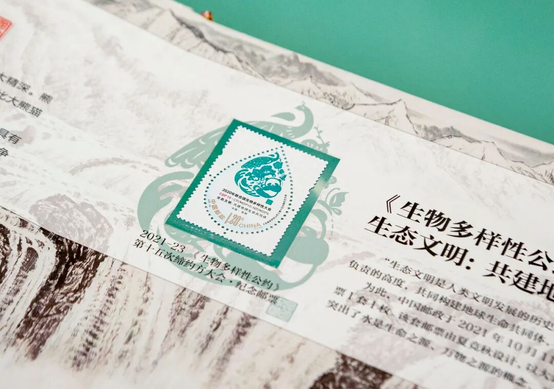 该套邮票以大熊猫图案以及大会标识为主体,在设计上首次采用水滴外形齿孔,突出了水是生命之源、万物之源的概念,并与大会标识设计相互呼应,湖面构思巧妙、主题突出。