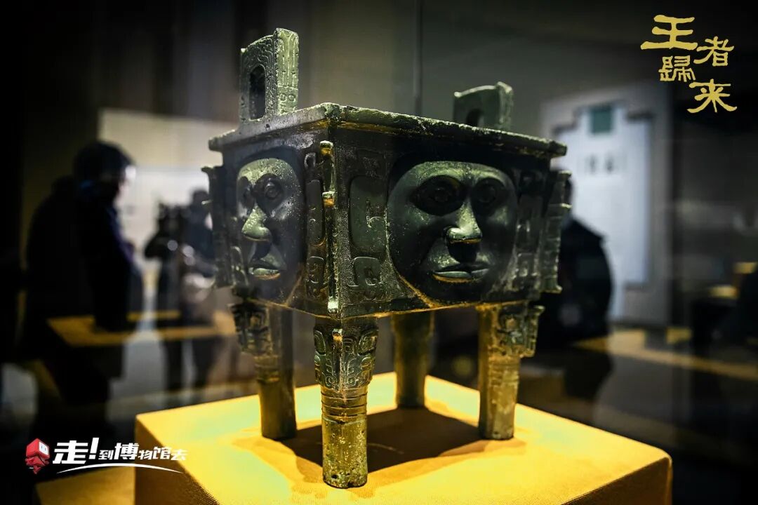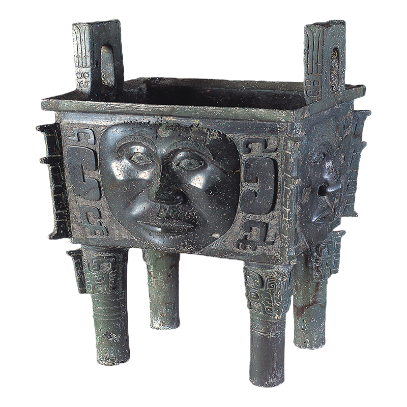 人面纹方鼎——王权与神权相结合的瑰宝商代晚期高38.5厘米,长29.3厘米,宽23.7厘米1959年湖南省宁乡县(今宁乡市)黄材寨子山出土湖南省博物馆藏