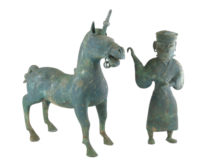 “古典余辉”着重展现了自汉至唐,青铜器制造技术继续向前发展,青铜器也一直紧随时代思潮,融合发展出新的特征,例如体现汉代神仙思想的博山炉,反映民族融汇及东西交流、具有异域风情的青铜器,还有青铜造像等。