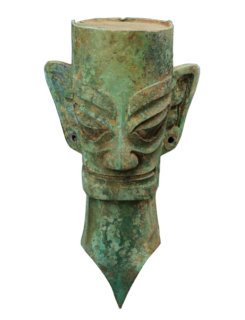 三星堆青铜人头像——谜一样的男子商代晚期高41.5厘米,横径20厘米,纵径17.3厘米三星堆遗址二号祭祀坑出土四川广汉三星堆博物馆藏
