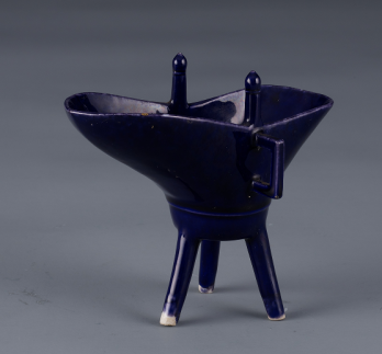 蓝釉瓷分为以氧化钴为呈色剂的高温蓝釉瓷和以氧化铜为呈色剂的低温蓝釉瓷,早在唐代就出现了以氧化钴为呈色剂的低温蓝釉陶,唐三彩中亦有低温蓝彩,元代才出现了高温蓝釉瓷,钴料均为西亚进口青料。这种高温蓝釉瓷数量较少,有些用描金装饰,极为珍贵。金元时期出现了低温蓝釉瓷,如孔雀蓝釉、珐华釉等品种,常见于北方窑场。明清时期的蓝釉瓷在继承的基础上创新发展,出现了洒蓝、宝石蓝、天蓝等新品种,有些使用了西方颜料,工艺新颖,制作考究,质量上乘。