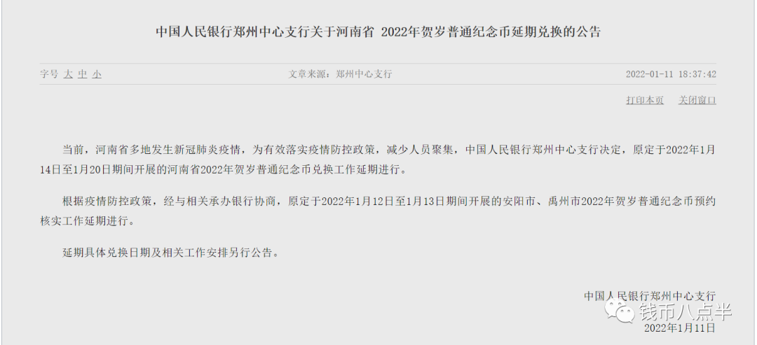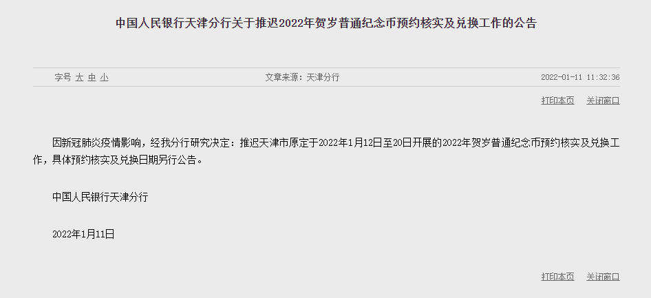 以下地区受疫情影响,虎年纪念币的兑换将延期,这些地区的藏友就不要去了!