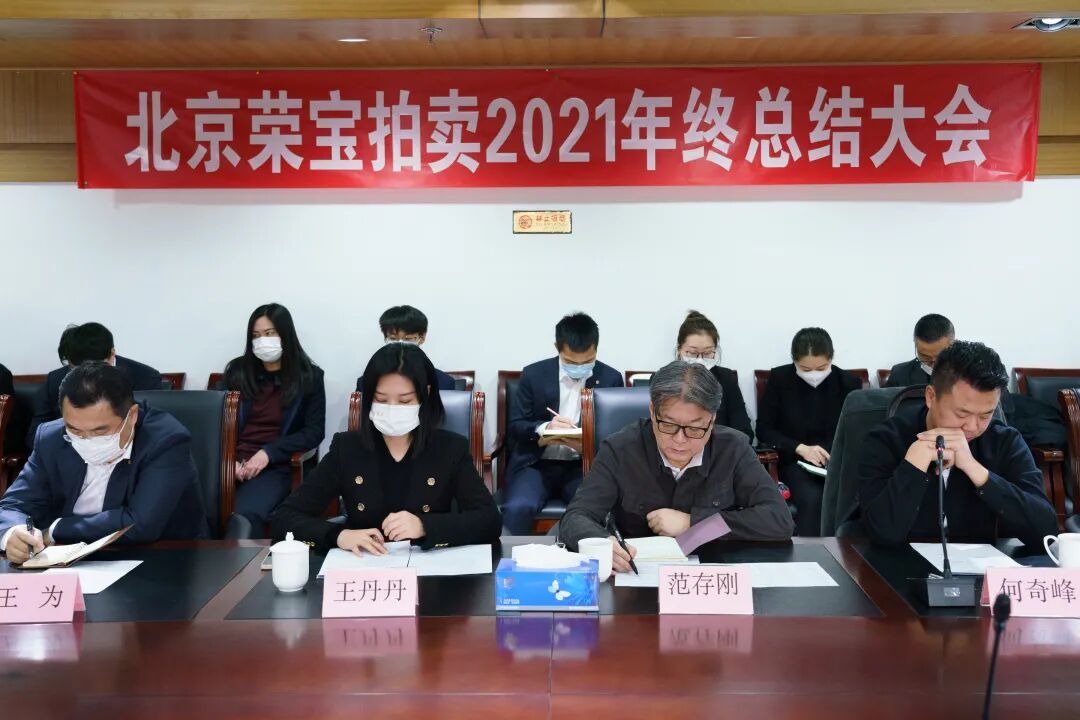 会议最后由北京荣宝拍卖董事长兼总经理范存刚作总结性发言,并对所有支持和信任北京荣宝拍卖的藏家及艺术品爱好者表示诚挚的感谢,对团结一心、努力拼搏的荣宝团队表示肯定和感谢。强调并指出北京荣宝拍卖要按照中国出版集团有限公司和荣宝斋有限公司的要求,贯彻并落实好上级部署战略。疫情当下,坚决做好防疫工作。抓经营、促发展,在工作中大家要团结一致,要有使命意识、荣誉意识、奋斗意识、危机意识。2022年恰逢荣宝斋350周年,我们要肩负使命,维护品牌荣誉。以现代化加强企业管理,以法治企,面对困难要齐心协力、充满信心,协同共进,把工作推向一个新高度,争做品质优异的文化企业,为艺术品拍卖市场的良续发展做出贡献。