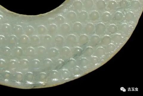 粒粒晶莹剔透的谷纹,切琢的十分精密,打磨的非常光滑,排列的极为规整,谷纹璧的制作在古时是一个极需技术、经验和耐心的工种。