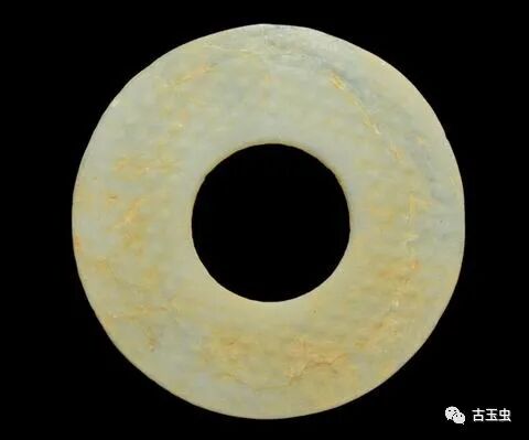 谷纹玉璧外径14厘米,内径4.8厘米,厚0.3厘米