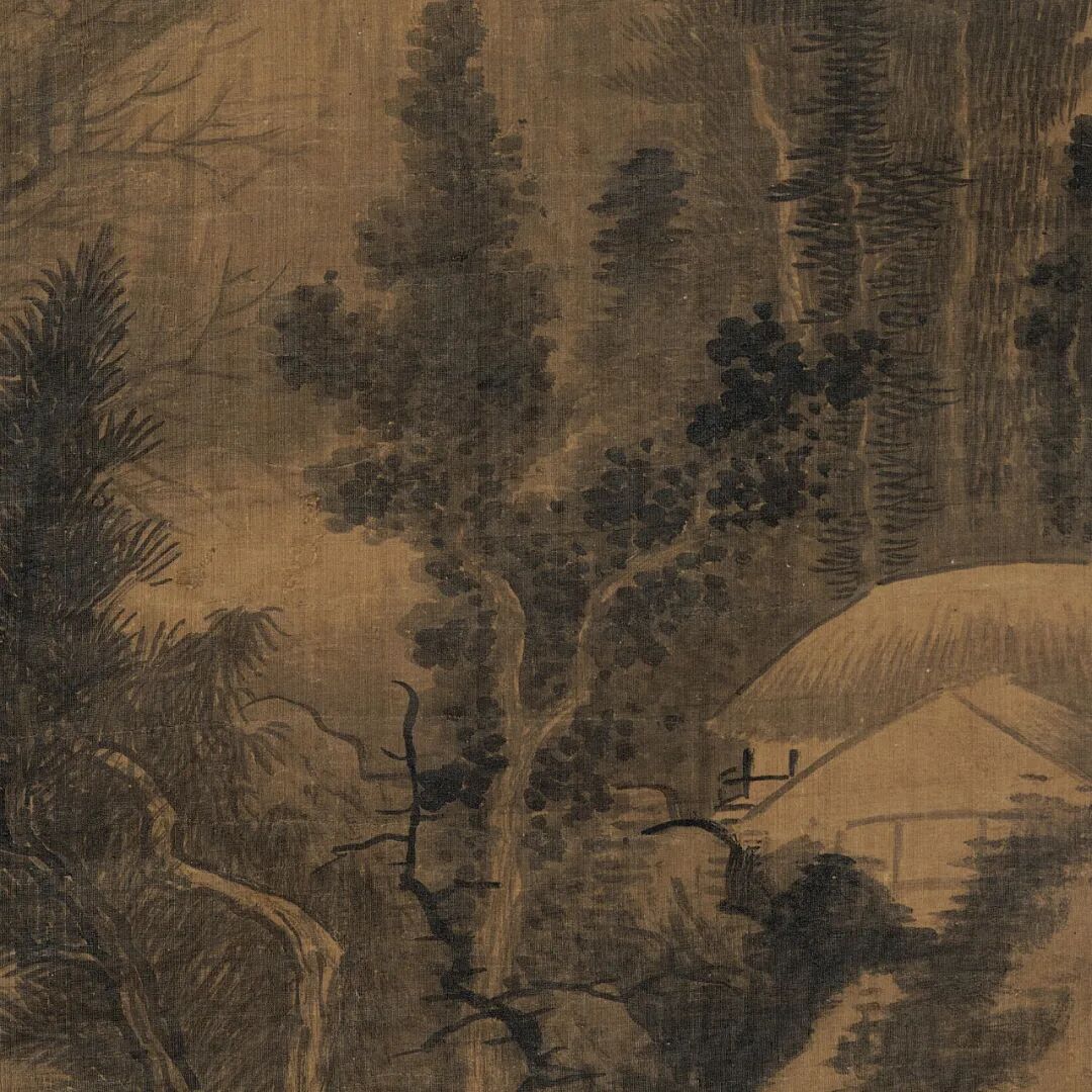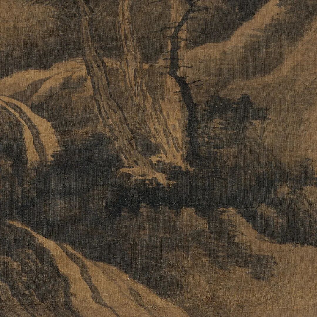 龚贤艺术成就最高的是他的“黑龚”作品。本幅即为其“黑龚”时期创作。他的山水画多取材于南京一带真山真水。正如本幅所见,以高度的笔墨技巧,创造出“奇而安”的丘壑,营造的正面山体雄壮险峻,显示出自然造物之崇高伟力却又依然引人入胜。画树为典型的“晴林”,由“今卧起但徐徐”也可加以左证。龚贤使用留白来表现空间、光影、质感的方法被无数画家奉为创作秘要。由点到染是七遍,自诩前无古人。