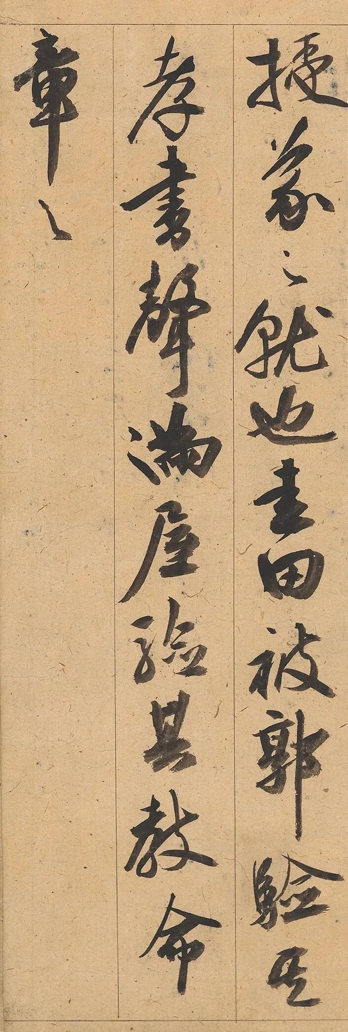 用宋纸书写,纸质的细腻性衬托着墨色的变化万端,真正达到了纸墨相互生发的境地,四合;
