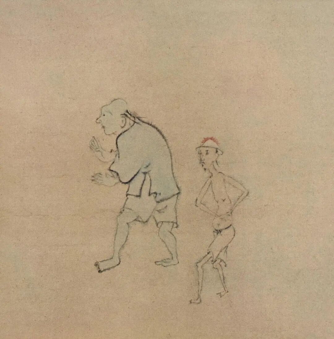 《鬼趣图》共分八幅,每幅各画鬼像二三人,共画鬼或缺或残者十九,形态各异。或面色惊恐,或行迹谄媚,或形容枯槁,或狂叫奔走,皆在夸张的真与实的对比下尽显奇怪、诡异之感,一个个鬼影在缥缈又阴森冷寂的气氛中隐现着形象、行迹、神情的嗔怪,引人深思其中深意。