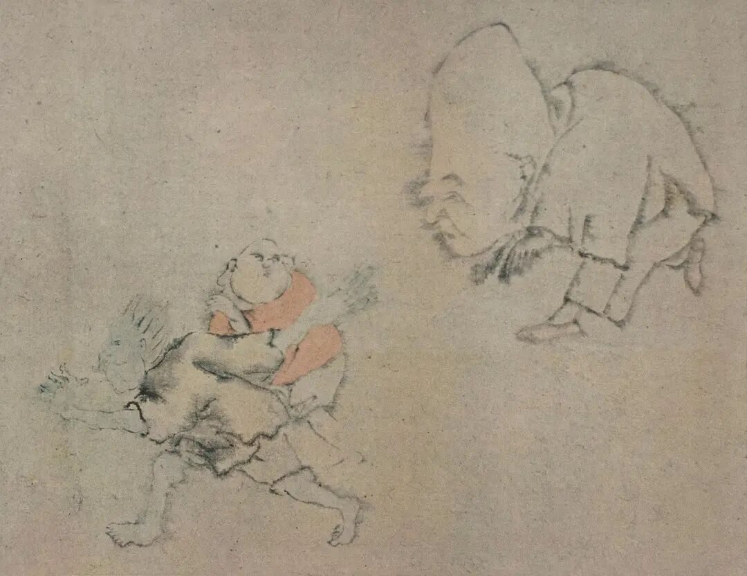 罗聘,字遯夫,号两峰、花之寺僧、金牛山人、师莲居士等。“扬州八怪”之一,师承金农,因善画鬼被称赞为“五分人才、五分鬼才”。《鬼趣图》原为册页,重裱成卷,为香港霍宝材藏本,上有题跋150余则。虽无明确作画时间,其中清人沈大成最早题于乾隆三十一年(1766),可将此画创作时间推断至1766年前。
