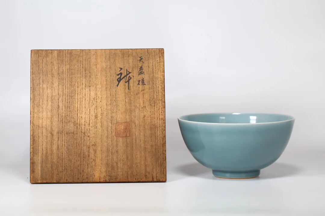 京烧名家【二世三浦竹泉】造 单色釉天蓝瓷 果子钵