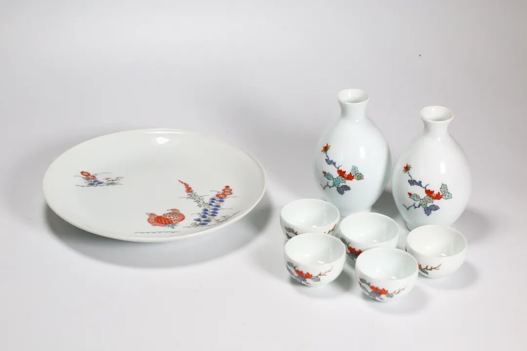 十二代『酒井田柿右衛門(渦福印)』作 錦牡丹文酒器一套