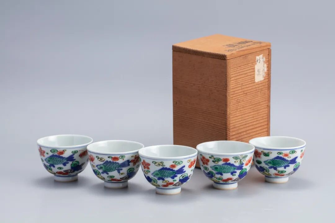【平安高野青凤】造 着彩樱花纹煎茶杯五客