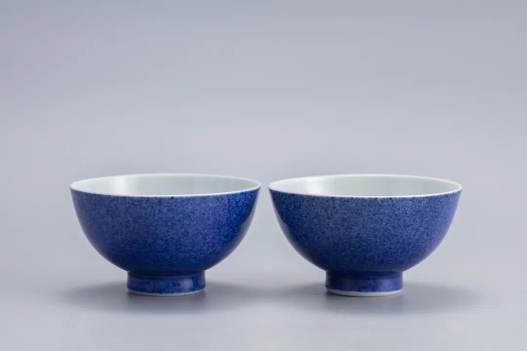 京烧名家【初代三浦竹泉】作 万珠堂定制吹墨主人杯一对