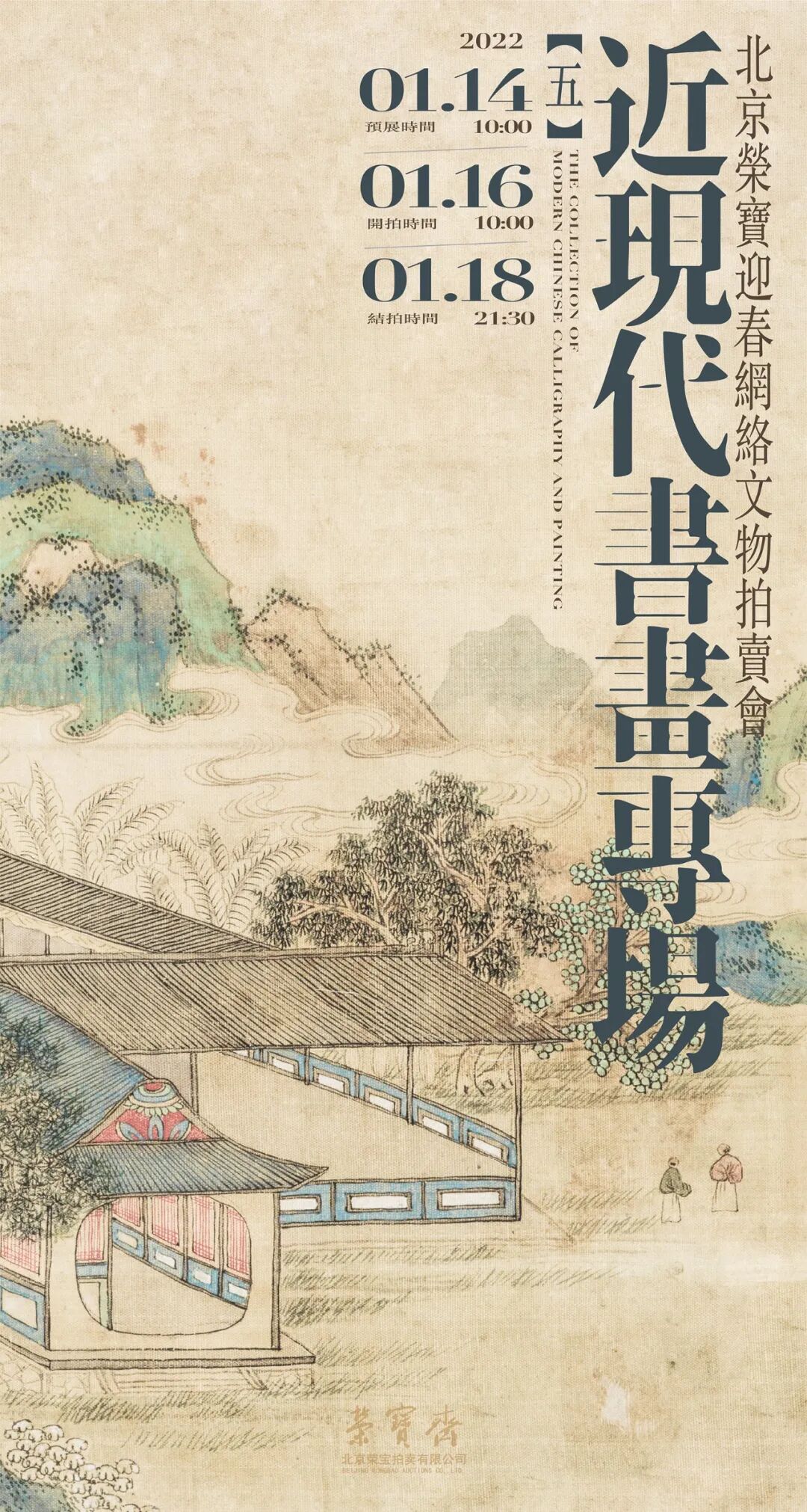 北京荣宝迎春网络拍卖会·近现代书画专场(五)将于1月14日10:00—1月16日10:00开启线上预展,并于1月16日10:00开拍,1月18日21:30结拍。