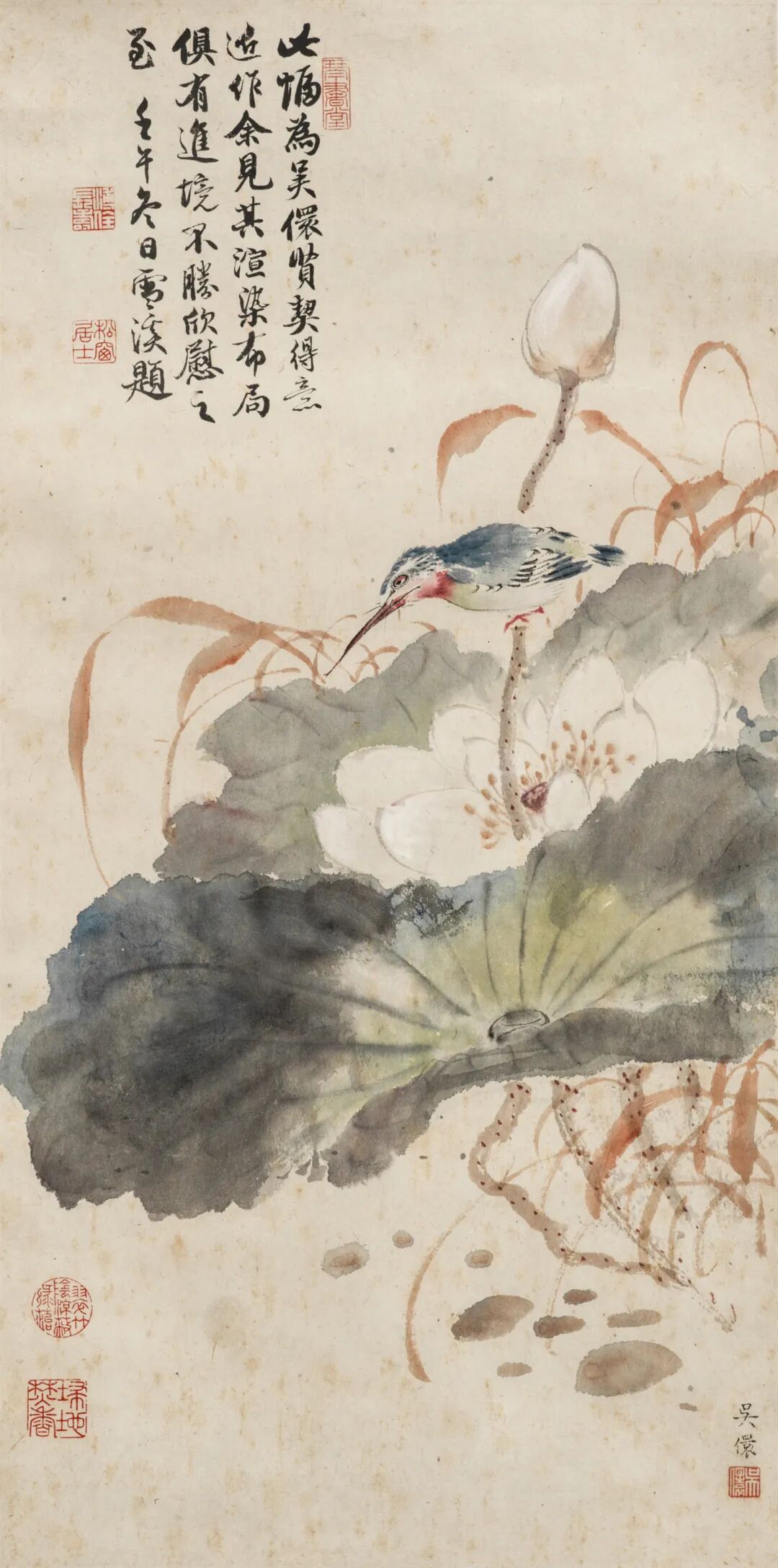 吴儇(溥佺题) 荷花翠鸟