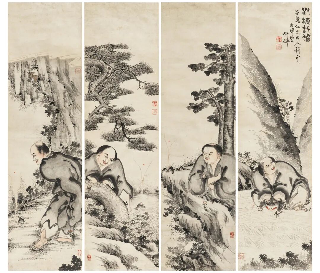 竹禅 刘海戏蟾四屏