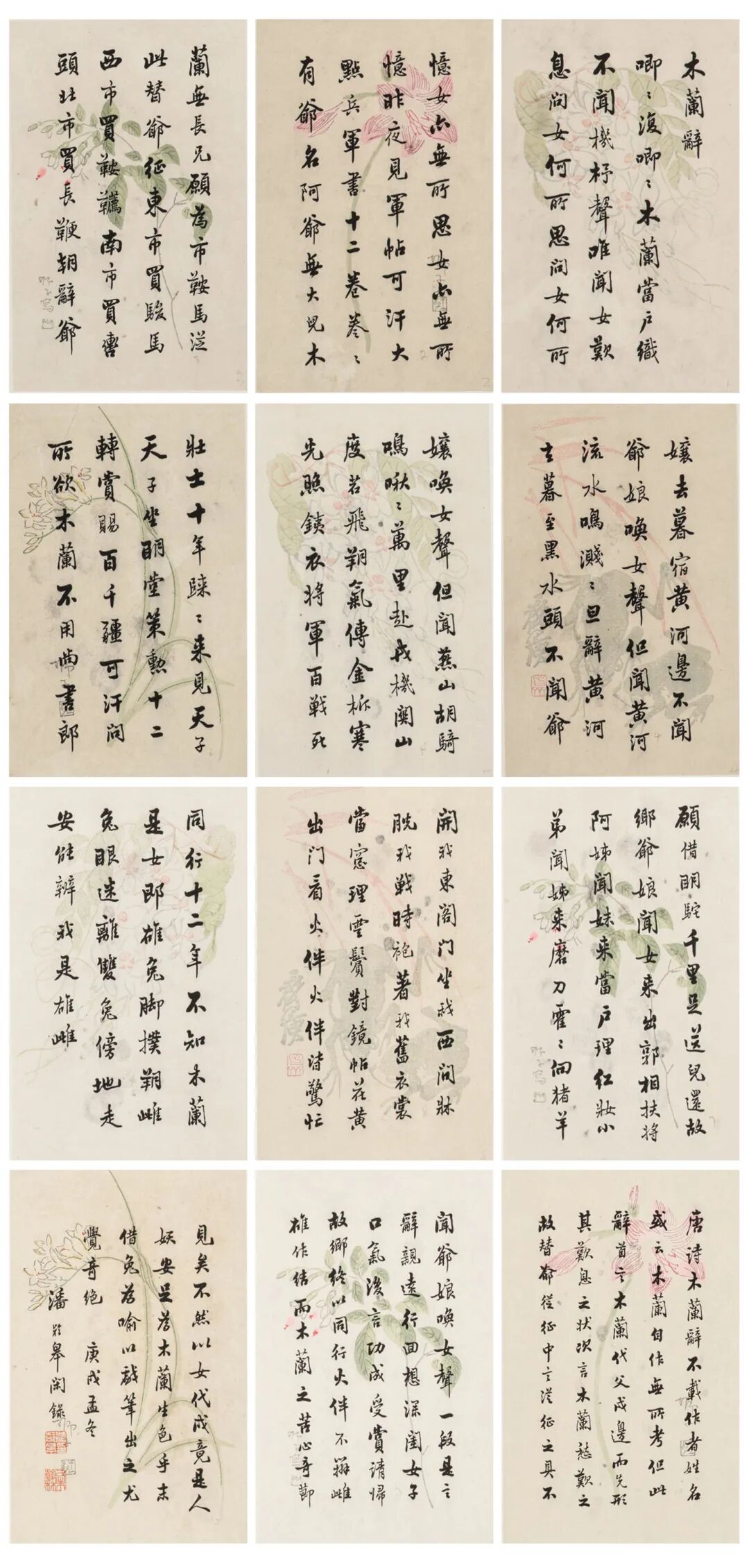 潘龄皋 行书《木兰辞》册页(十二开)