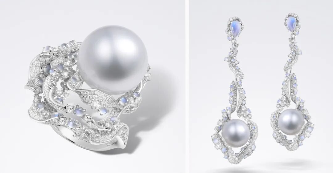郑莎设计,「海洋罗曼史·逐月」南洋珍珠配月光石及钻石戒指