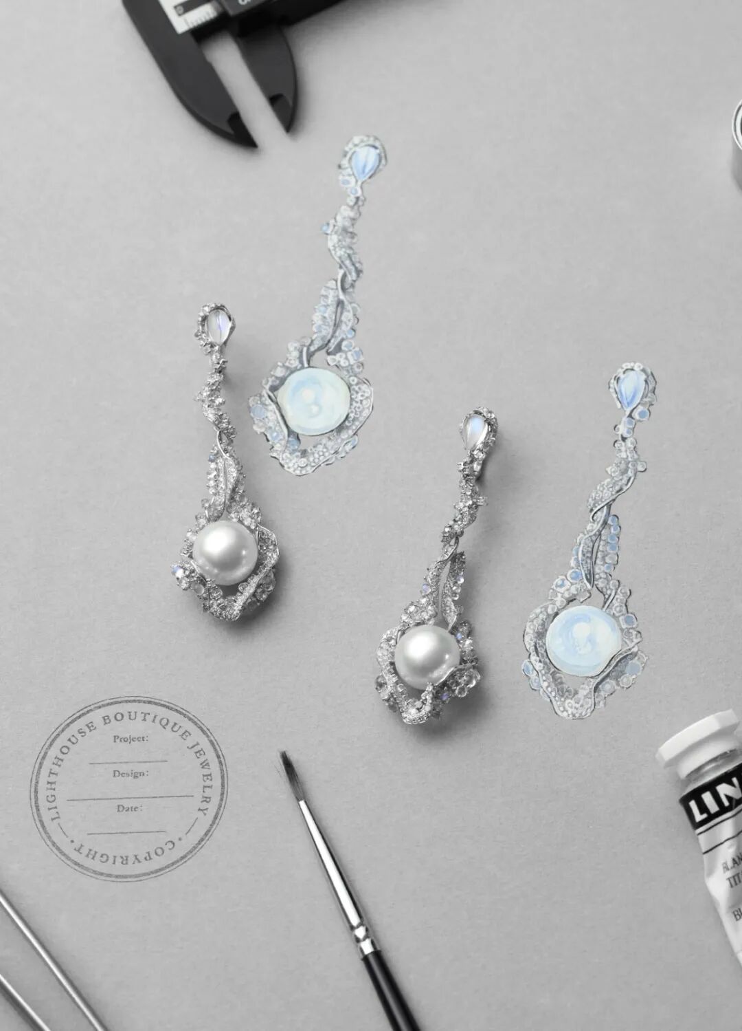 海洋罗曼史第一次创作是在2019年,这一年我的创作偏向于自然主义再现和传达,所以2019年的灵动四季系列,且听风吟系列,海洋罗曼史和仙鹤,都以自然界为主题,我想把自己对自然的视觉美感,通过珠宝来传递给大家。