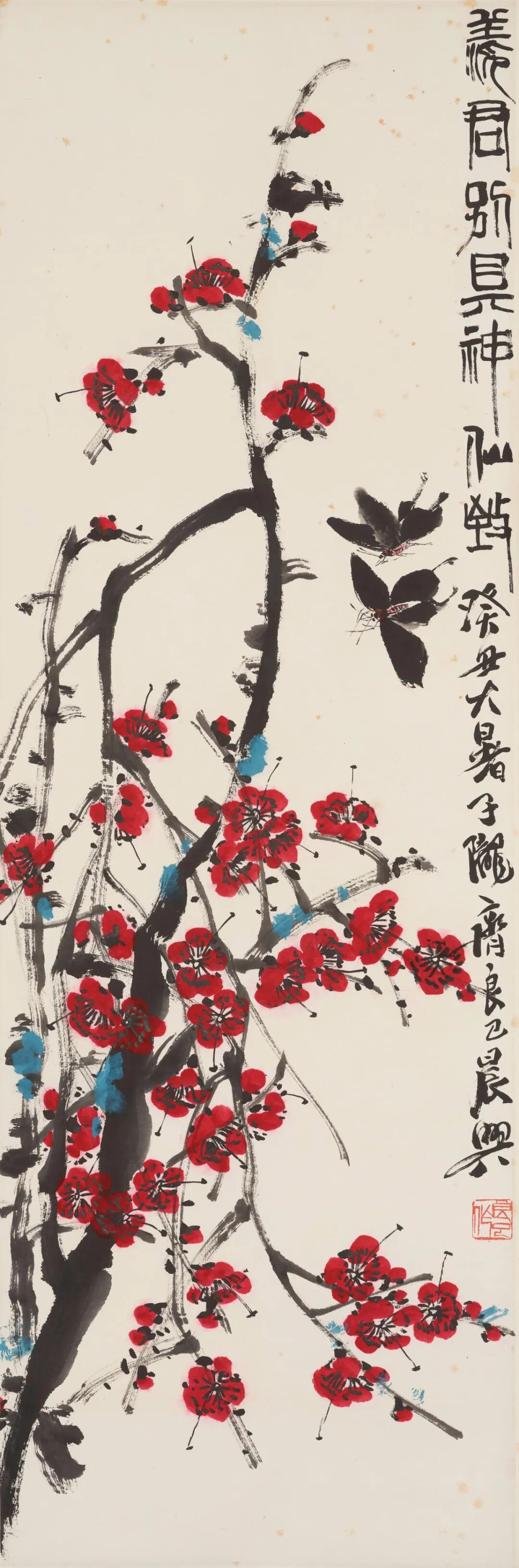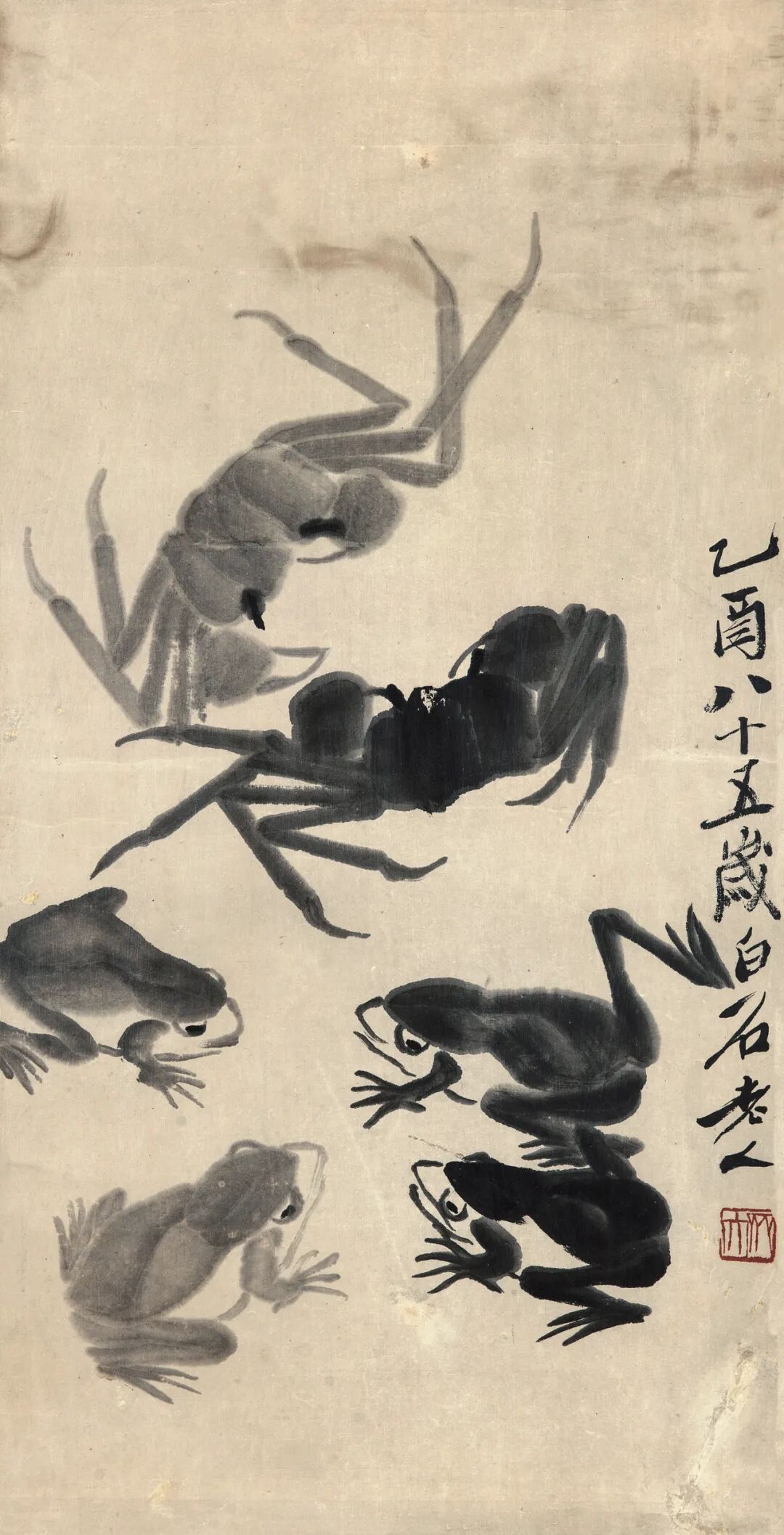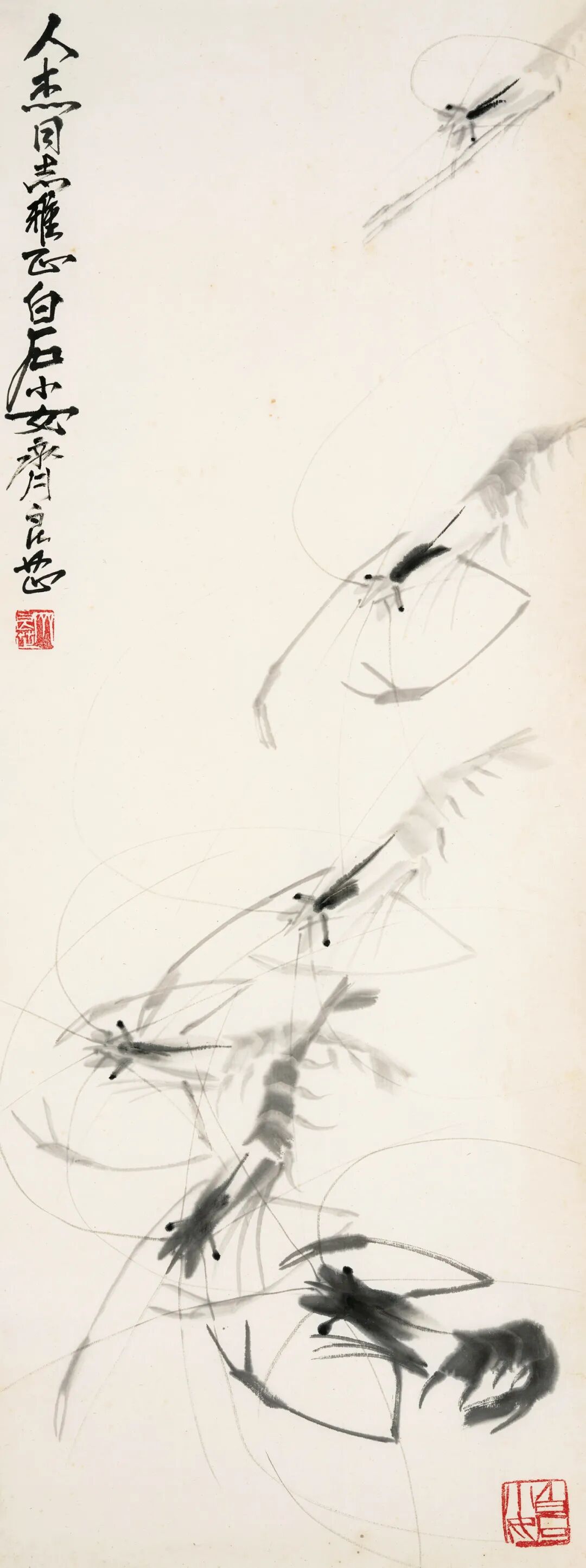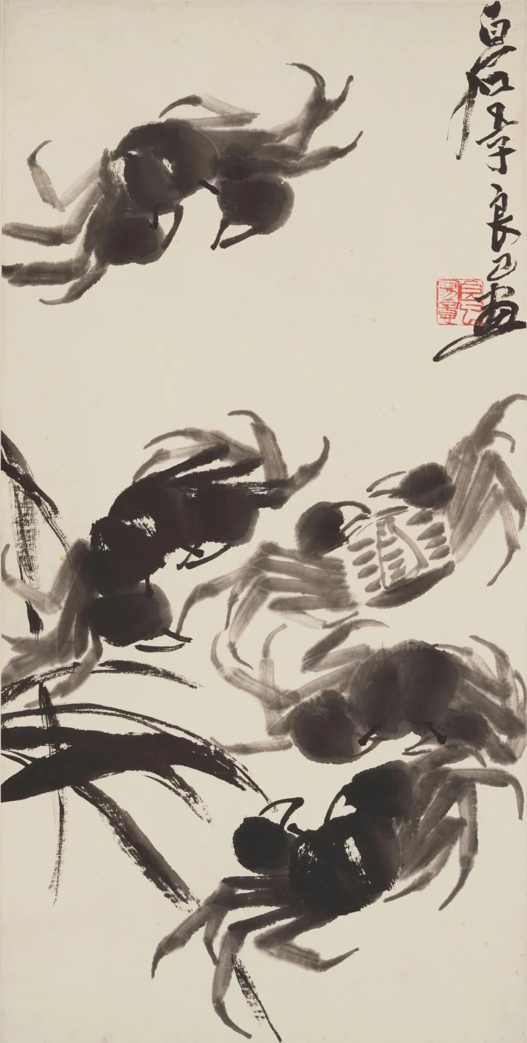 白石老人亦是踏循着这样的人生轨迹。晚清民初的海上画坛“执牛耳者”吴昌硕,齐白石未曾和他相见,但当齐白石移家扎根北平成为一枚“大龄北漂”时,为了养家糊口的生计,他只能“关门十载”,进行“衰年变法”,这十年间发奋自学的主要对象,便是吴昌硕。吴昌硕还为白石老人写润格,尽显大师提携后辈之风范。
