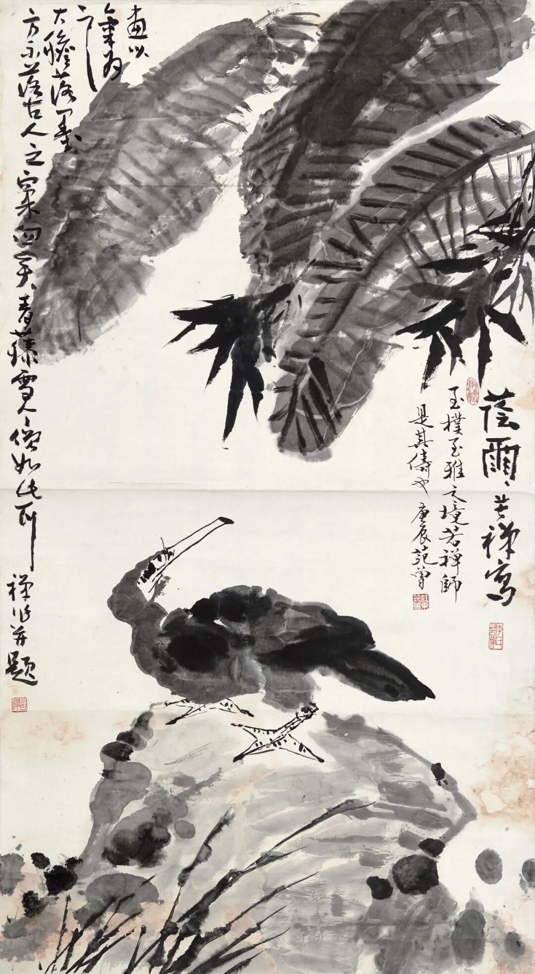 题识:荫雨。苦禅写。画以气为之,大胆落墨,方不落古人窠臼矣,青藤雪个僧如此耳。禅作并题。