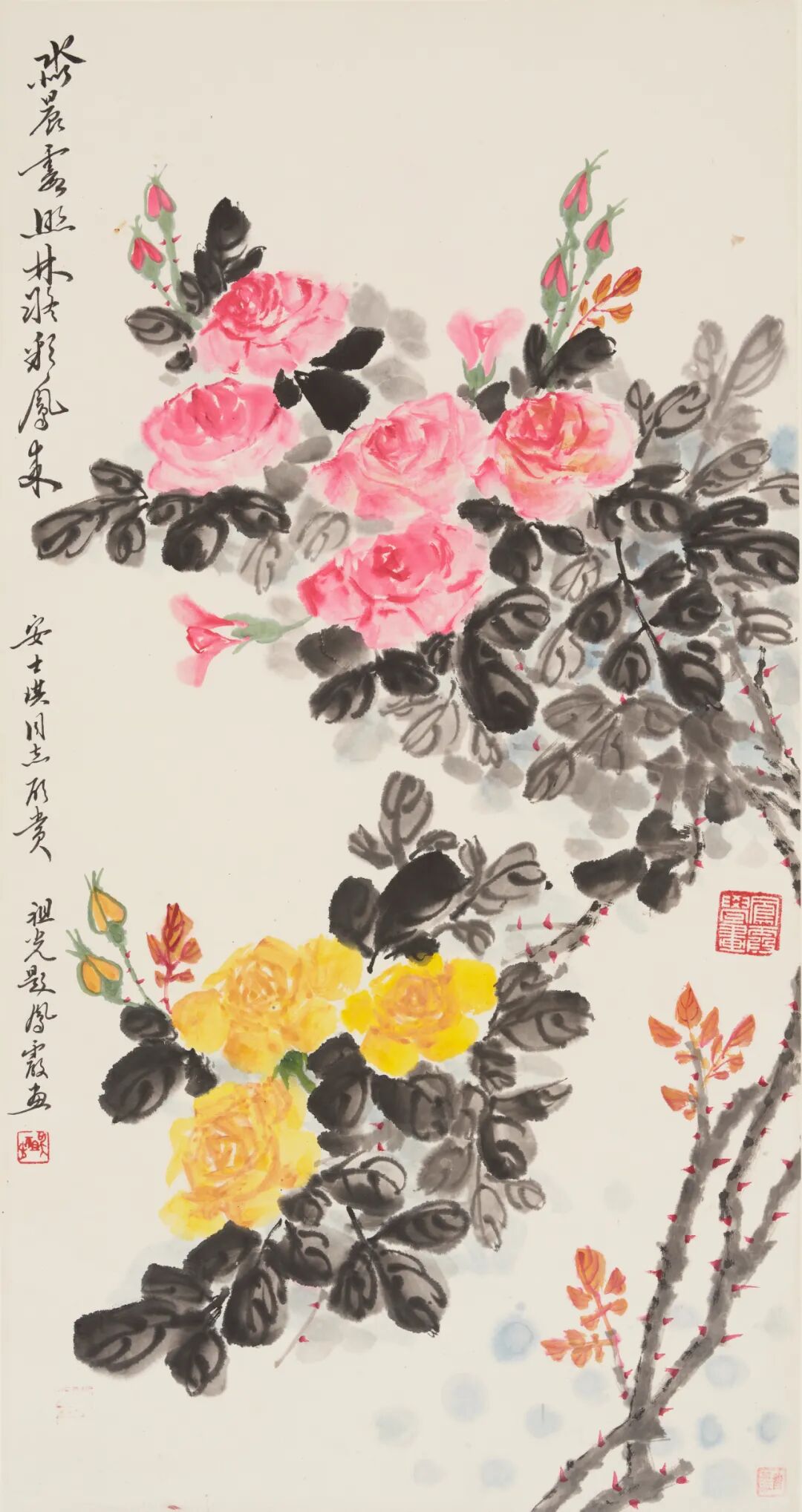 题识:水似晨霞照,林疑彩凤来。安士琪同志欣赏,祖光题凤霞画。