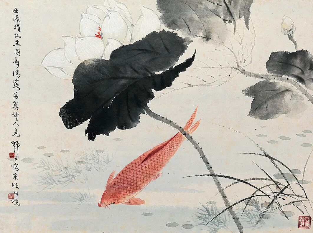 曲港跃跳鱼,圆荷泻露,寂寞无人见。师子写东坡词境。