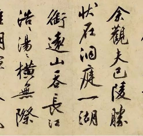 文彭(1498-1573)为文徵明的长子,在中国书画艺术史上,文彭以篆刻享名。虽然文人刻石章的风气可能早到元代的大画家王冕,但篆刻史上公认的文人篆刻鼻祖却是文彭,尤其是在使石章成为篆刻艺术主要载体的演进史上,文彭起到了至关重要的助推作用。 文彭的书法艺术,从小受到其父文徵明的影响,楷书得文徵明亲授,行草书则学孙过庭、怀素,也参入了一些祝枝山的笔法。他擅长的书体要多于文徵明,篆、隶、楷、行、草均能。文徵明以功力胜,文彭则以才情胜,脱略灵变,并不囿于父风。他亦精于篆刻,明清以还称一大家。此卷书范仲淹《岳阳楼记》。大字行书,法黄庭坚而沉雄顿挫,不以逸笔放任,故真气充沛,首尾一贯。兼之佳纸良墨,虽迭经四百余年沧桑之变,犹有精气溢出,读之令人神往。![]()