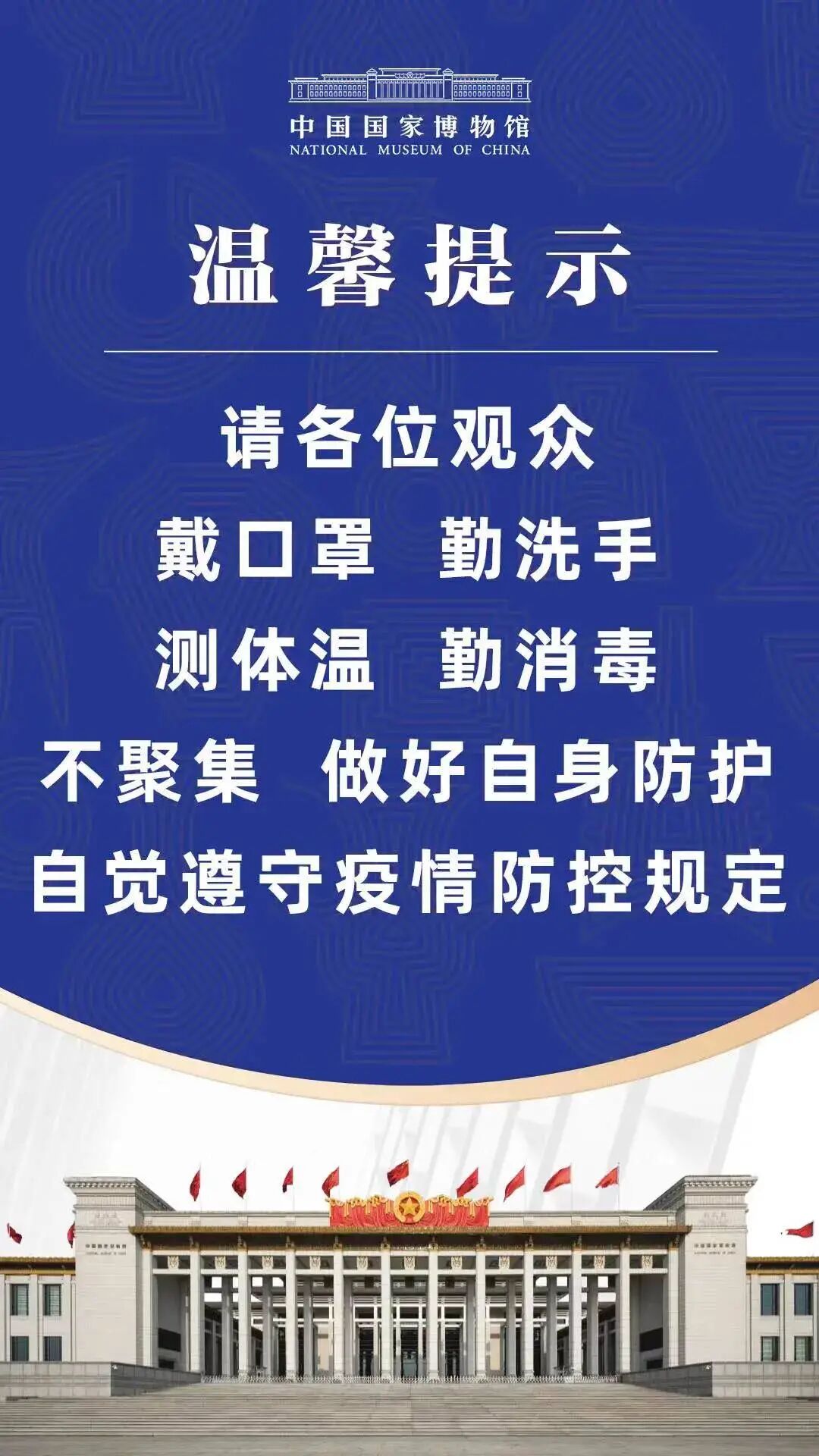 新冠肺炎疫情防控工作绝不松懈,中国国家博物馆主动响应上级号召严格落实限量、预约、错峰要求,提前预约、错峰入馆、正确佩戴口罩、验码、测温有序入馆、保持合理距离……让我们一起来个美好约定,安全、健康享受美好假期。下面这几幅宣传海报和一个动画视频建议请仔细看完哦~