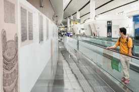 国庆前夕,中国国家博物馆和北京大兴国际机场联合打造的“文化中国长廊”再次上新,子龙鼎、大盂鼎、大克鼎等国之重宝,考古发掘的古芮国珍宝,形态各异的中国古代钱币精品等考古发掘品和文物珍品以图片展的形式悉数亮相大兴机场。