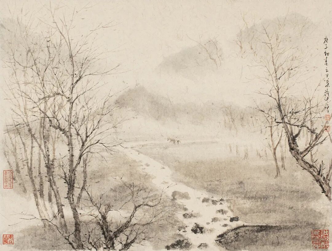 事实上,无论是石谷、麓台,还是苦瓜、髡残,其求苍茫浑沦,皆得益并也都来源于黄鹤山樵。老叶于王叔明处用力,确实是探到了源头。自王蒙发其端,从沈文到文敏、四王,从四僧到抱石、大千,班班相望,皆以一家画格以证其源。这似乎是个轮回,却为世人留下了面目各异、精彩分呈的一部山水画史。老叶的努力与野心,就是在会心先贤的同时贡献自己的理解。一部山水画史,也是因历代画家的这些努力,终于丰富深厚起来。这恰恰是老叶绝望求画的意义,更满足了他追根溯源、始露全身的野心。艺术说穿了,无非情与理的相生相杀,古今中外,概莫能外。四王画偏于理,石涛、八大直至近代傅抱石,则偏于情。这情当然非是男女情爱,而是指重视感觉,不为理性所缚。然其真正的妙处,则在于情终能与理合,所谓从心所欲不逾矩。人类自古追求的,不也正是这永恒的主题?不过因各人拿捏的不同,化作了思想史上纷繁的流派,顺道成就了艺术的意义。不拘法度而终能合乎法度,超以象外而能得其寰中,历来是中国文化的追求。有没有法度,有时确乎不重要,但不合于法中之理,却也终无意义。老叶的绝望,其实便根源于此。在画面上,理性派与感性派有着明显的不同,但至终极,却又殊途同归,只能说这是实现方式的差异。而这差异,便是实现者的个性。古人云画如其人,看多看久了,自然知道,画怎会不如其人?![]()