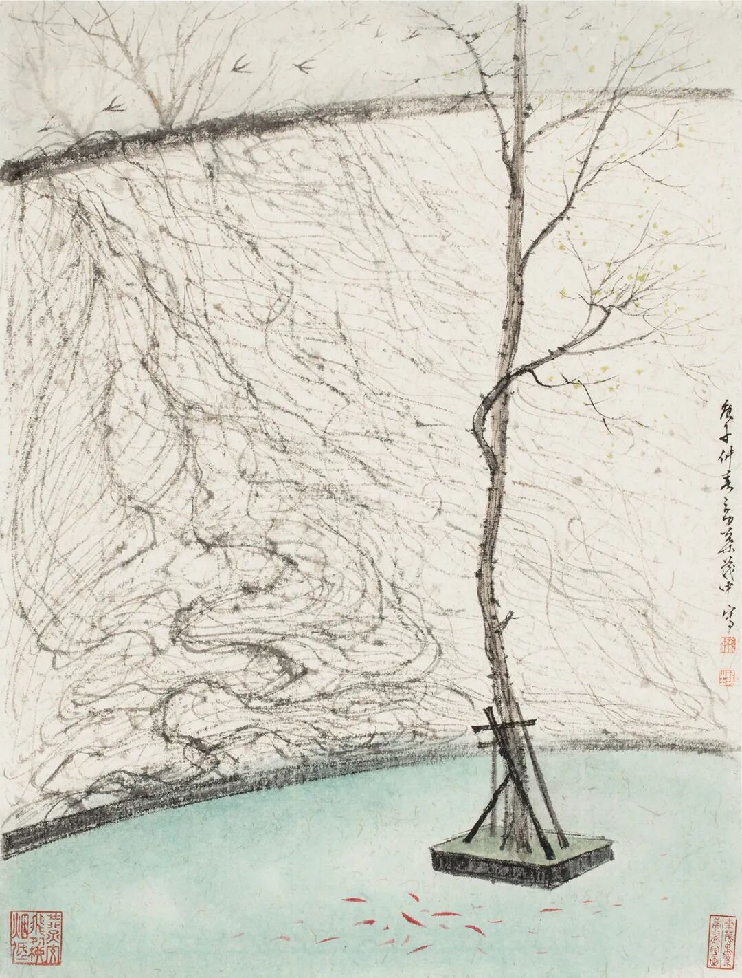 叶茂中,《水阁清话》,纸本设色,129×32cm,2016