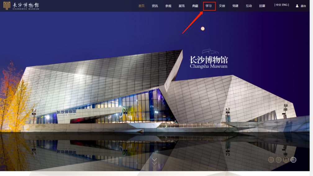 1.进入长沙博物馆官网,点击右上角“登录”。未注册的新用户请先注册。