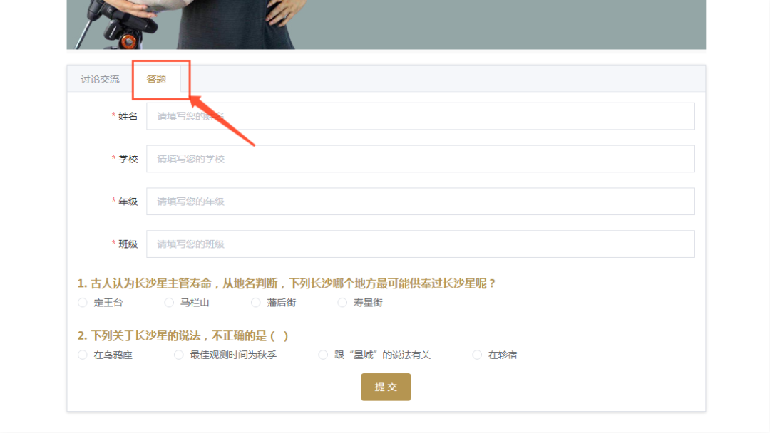 4.每节课最后设有“答题”板块,按照系统要求填写好基本信息后进行答题。本课程共设置5个小题,每小题20分,完成全部题目并且答对60分即可获得课程证书。