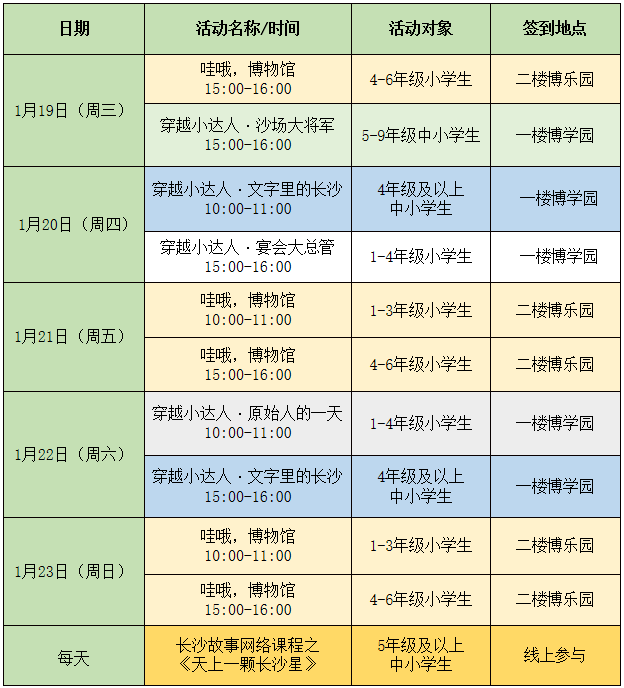 活动地点:长沙博物馆二楼博乐园(大厅直升梯上二楼左转)