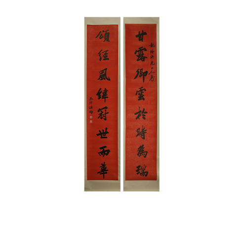 楹联取自馆藏洪钧的《八言行书联》:“甘露卿云于时为瑞,颂经风纬冠世而华”。洪钧是同治年间的状元,同时,他也是中国状元中唯一一位外交官。