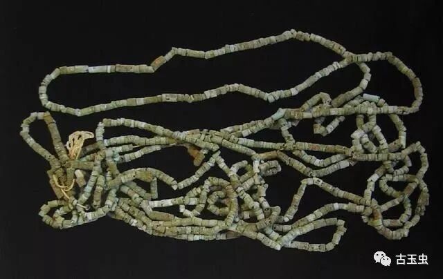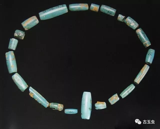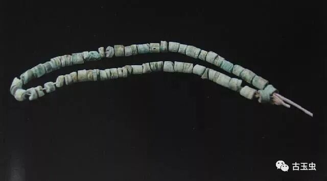 盘龙城遗址出土的绿松石制品与中原地区同时期的绿松石制品有着较为密切的文化联系,比如,郑州小双桥祭祀坑也同样出土过金片绿松石制品的残片。 从二里头文化到商文化时期,人们对绿松石制品的制作与使用一路发展演变,从商王朝的北土到南土,绿松石制品的发现与发掘,揭示了华夏文明在长江流域与中原地区密切的文化联系。齐家文化 绿松石珠
