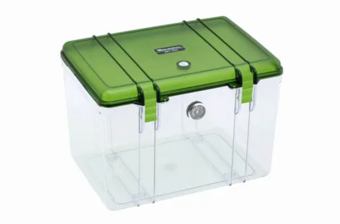 有条件可以买个带湿度表的密封箱,方便实时监测。