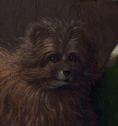 我在整幅画中最先看到的就是两人之间的汪星人,大眼睛就这么盯着你。狗狗作为人类的好朋友,毫无疑问就是忠诚的绝佳代表。