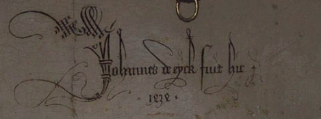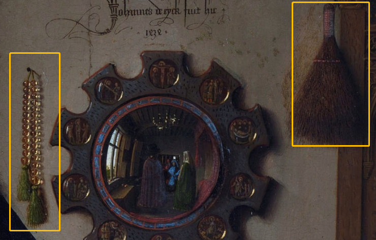 没事,为了避免这种粗心,画家早已贴心地在镜子上方签上“扬·凡·艾克在此”: