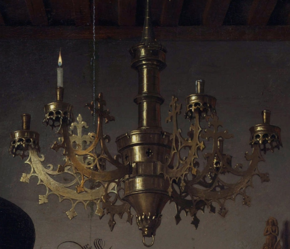 这一回,他的神迹是两人的身后上方,那一支亮着蜡烛的奇异吊灯!
