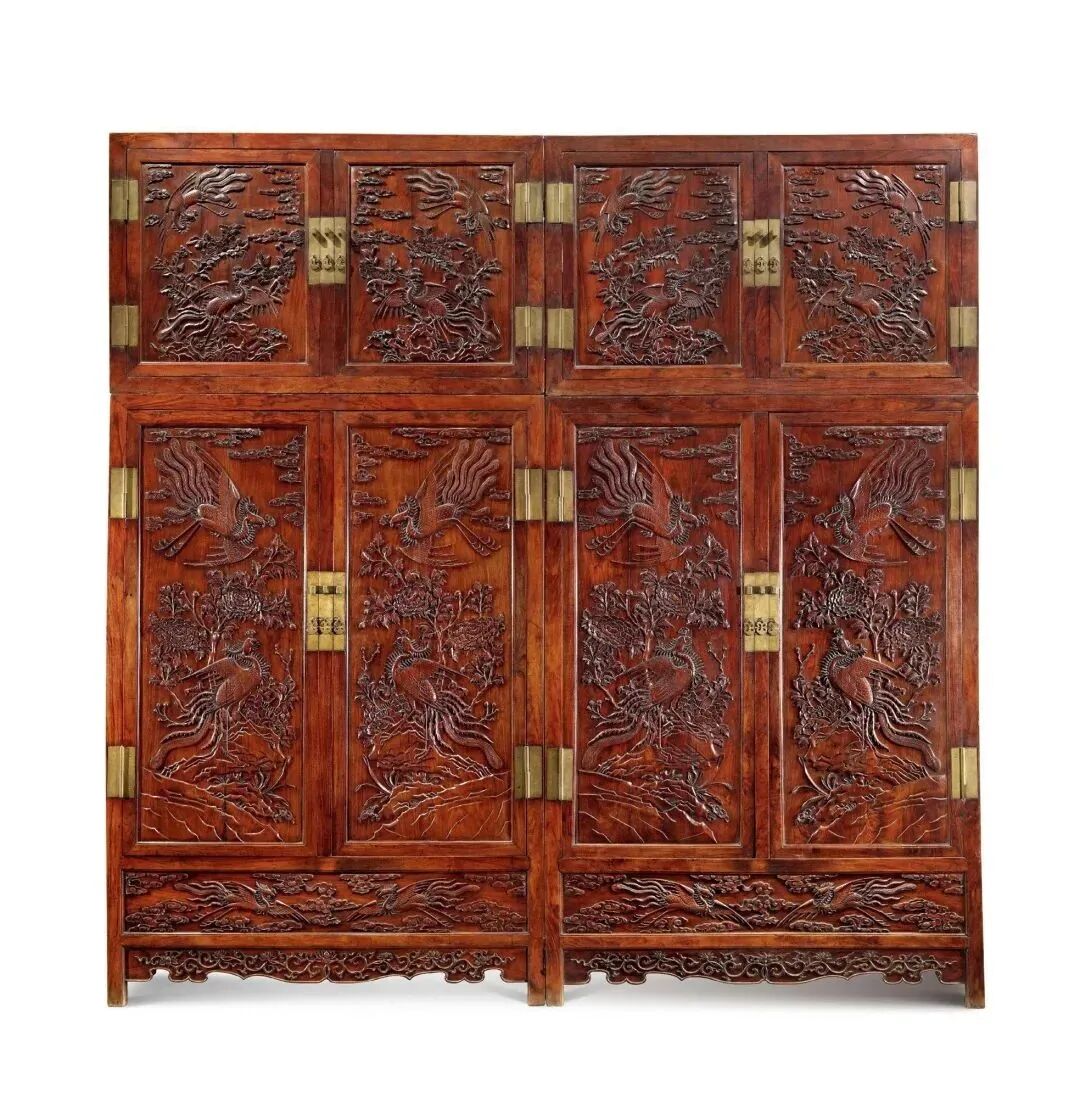 清康熙 御制黄花梨鸾凤牡丹纹大顶箱柜