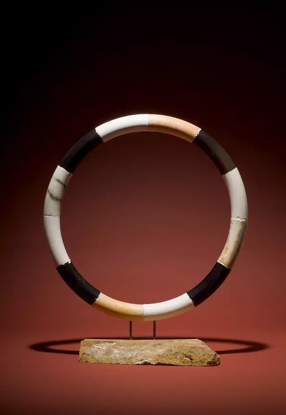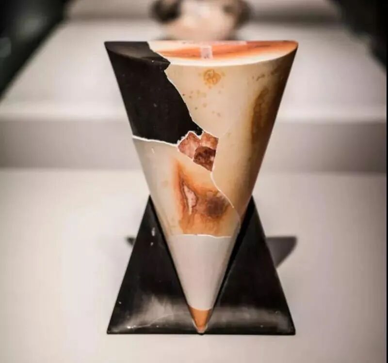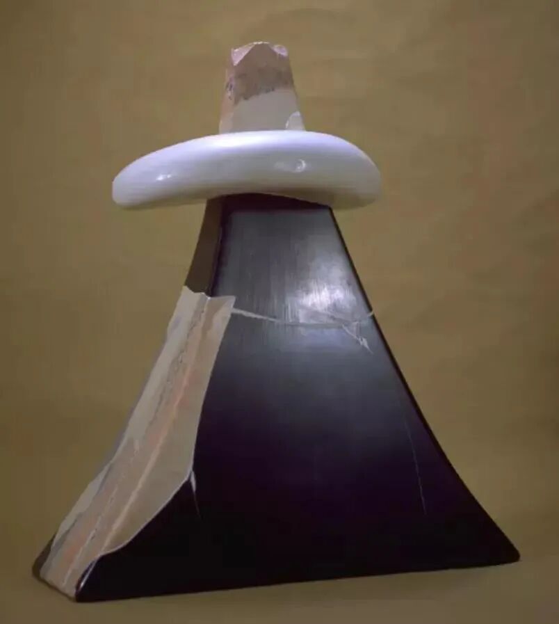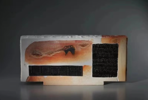 他的作品经漫长的手工成型后素烧、打碎,根据预先设计分装不同气氛的窑炉里烧造,使原本完整的器物经过重组后如“凤凰涅磐”般获得奇异再生,不同的烧成和气氛下陶片所拥有的色彩和表情又被作者精心的重置于完整的器形之下,形成丰富的视觉系统。填补缝隙时有意保存和强化的修复感成为寄神宗美作品的独特灵魂,传递着作者的深刻寓意,也使一种考古发掘的修复技术成为了风格与精神诉求的主体。