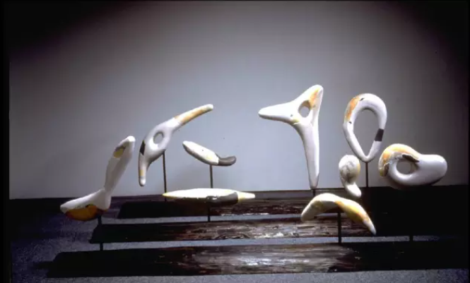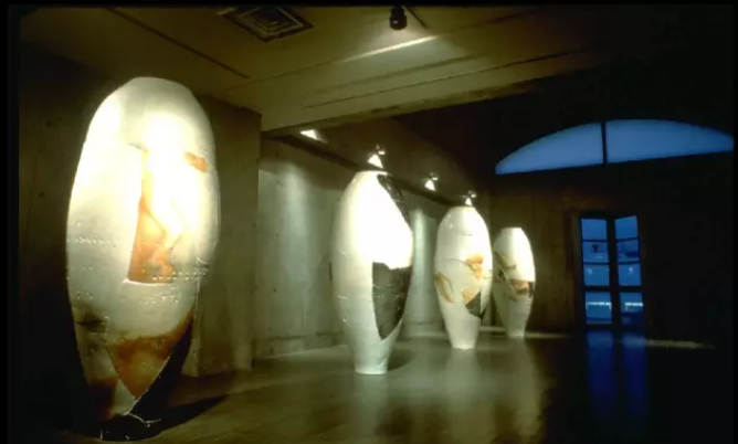 寄神宗美的独特风格源于其作品在一次运输中的的破损经历,粘接修补后的痕迹与过程启发了他的灵感,“破”与“立”的过程打破了完整器物带来的审美惯性,延展了他对陶瓷材料脆弱感与精神性的独特理解,改变了其对结构和实用性的认知。将痕迹与拼接升华到惜物与历史与情感的空间里,在大至两米宛如纪念碑小至勺子状的案头器的系列陶艺作品中诞生了在世界陶艺界广受注目的寄神宗美风格。