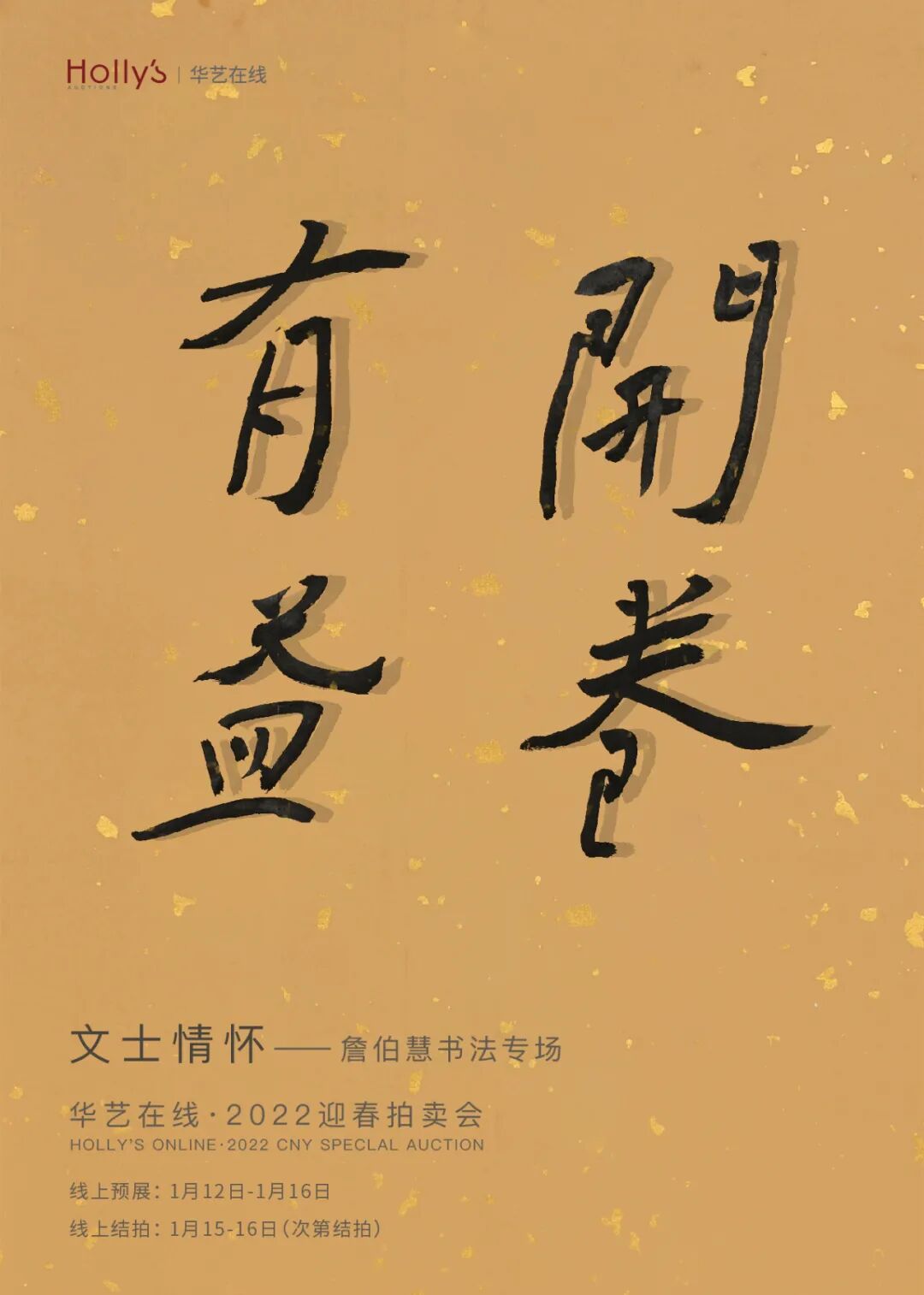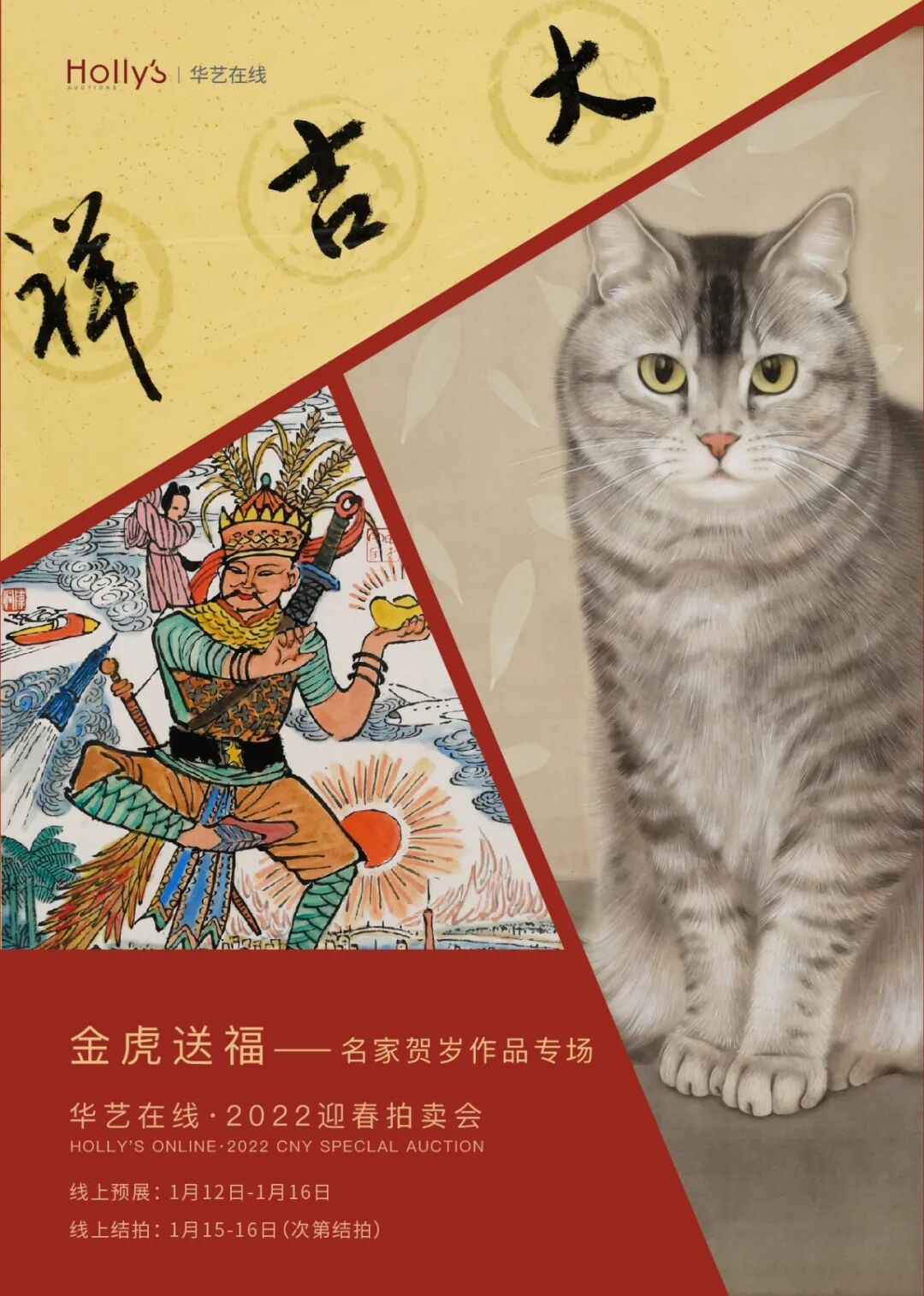 年关将至,华艺国际特别策划了『2022迎春线上拍卖会』,精心遴选了一份特别的新年艺术礼单。此次拍卖会汇聚中国书画、瓷器·玉器·工艺品、现当代艺术、珠宝钟表尚品、名酿·金工雅器等五大版块的20余专场,数百件精选拍品。中国书画板块特别策划11个专场,以此迎接新的一年。各专场拍品涵盖题材多样、形式丰富、寓意美好的书画臻品230余件,如有“金虎送福”主题的名家贺岁作品专场、广东艺术大家之“南风”绘画、中国书画之翰墨掇英,亦有来源清晰、收藏有序、备受市场推崇的同一上款或旧藏专场,更精选吴泰、何纯、方楚雄、詹伯慧等倾心之作。佳节将至,期待您在千变万化的笔情墨趣中,觅得心头所好、迎春好礼。