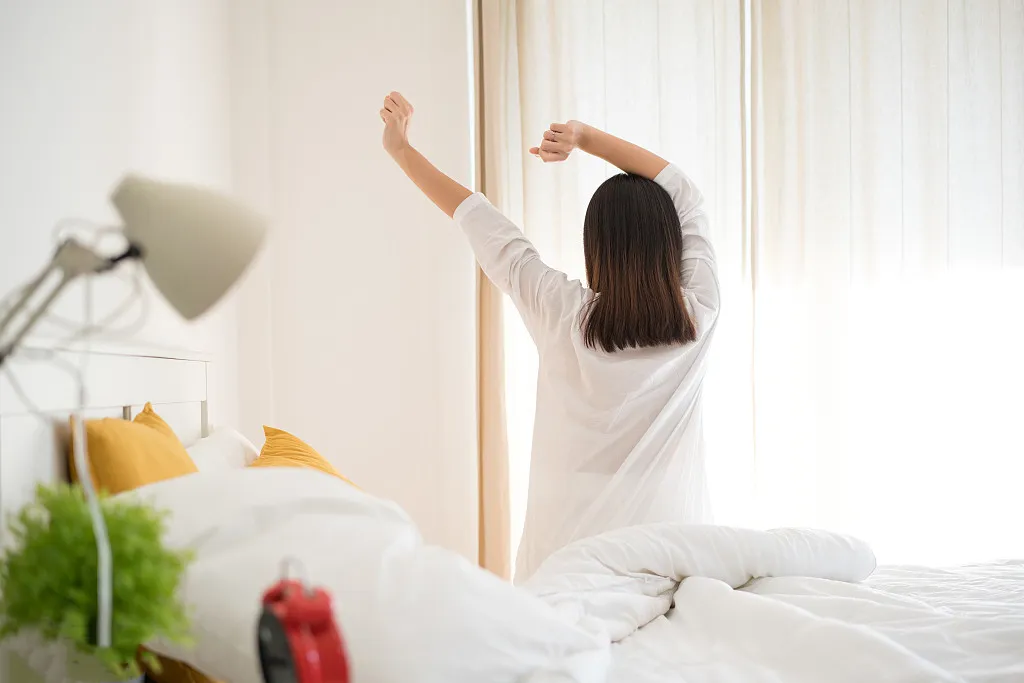经过一夜睡眠后,人体松软懈怠,气血周流缓慢,所以刚醒来时,总觉得四肢无力。此时若舒展四肢、伸腰展腹,可扩张胸腔,使得膈肌活动加强,带动肌肉收缩,加速血液循环,使存留四肢的血液迅速回流心脏,供给心脑系统足够的氧与血,以帮助增强脏腑功能,辅助预防心脑血管疾病。