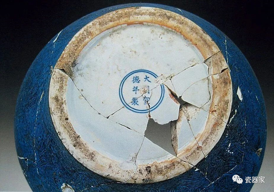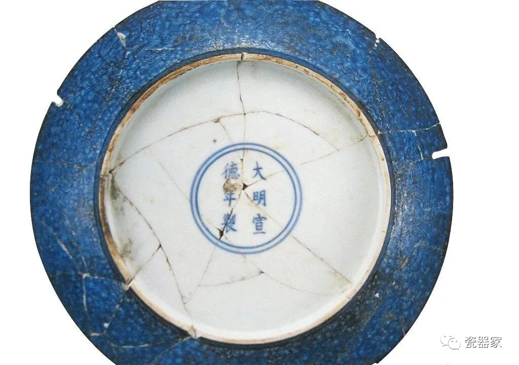 明宣德洒蓝釉刻花纹盘(敞口式)底款