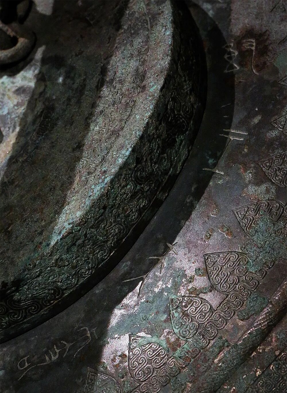 透过时光,这件青铜盉弥漫着2千多年前的神秘气息,肩部留下一行铭文,刻着“吴王夫差吴金铸女子之器吉”。