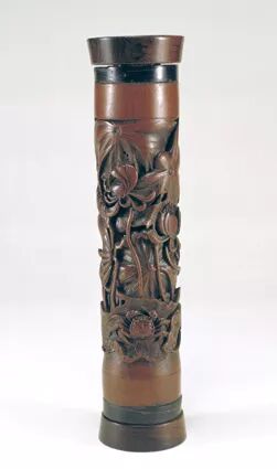 竹雕荷花香筒,明代,通高23cm,底径5.1cm