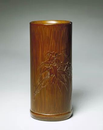 竹雕竹枝笔筒,明,高14.6cm,筒径6.9cm